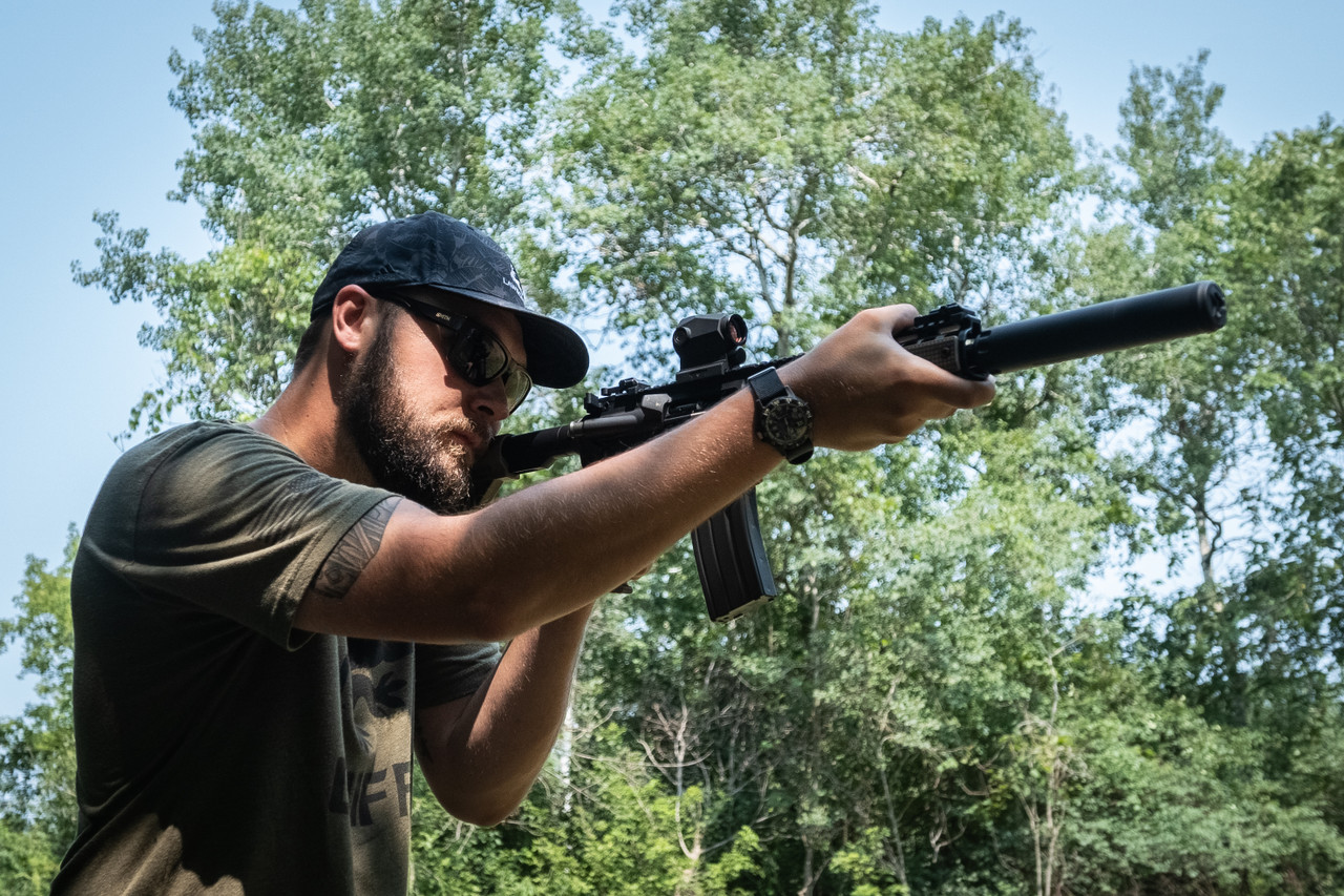It features our utility patented ECO-FLOW™ baffle system offering the apogee of multi-caliber sound performance. This baffle system reduces back pressure which alleviates much of the blow back through semi auto actions providing a more comfortable experience to the end user. This baffle system is tuned such that performance at the muzzle of the suppressor and the ears of the operator are balanced for a uniform and low sound signature in the immediate vicinity of the shooter.